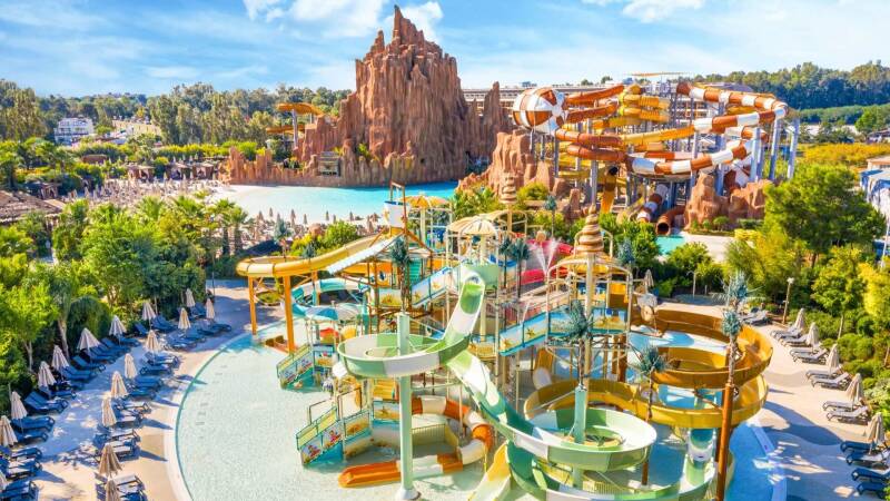 Zoom down the Leap of Faith slide through a shark-filled lagoon.
